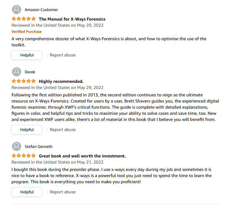 You will also see what others feel are important in the book that you have in your hand. This is priceless insight of other DFIRers.